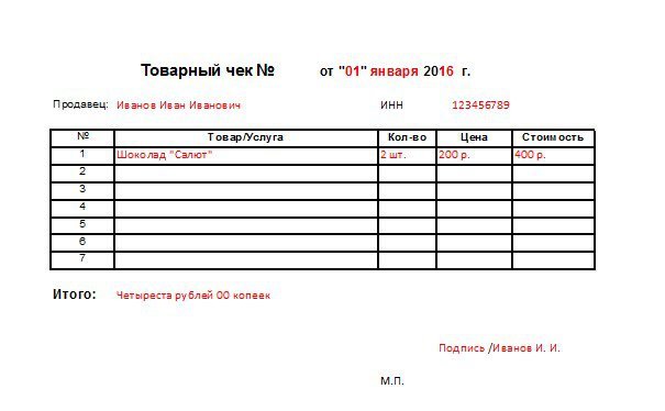 Товарный чек также является документом, подтверждающим факт приобретения товара, в случае, когда организации вправе не использовать ККТ (ФЗ №162-ФЗ от 17.07.2009).