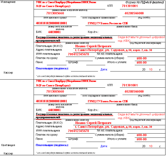 Необходимо помнить, что в случае ошибки в квитанции на оплату либо отказе в регистрации ИП, оплаченная сумма не возвращается.