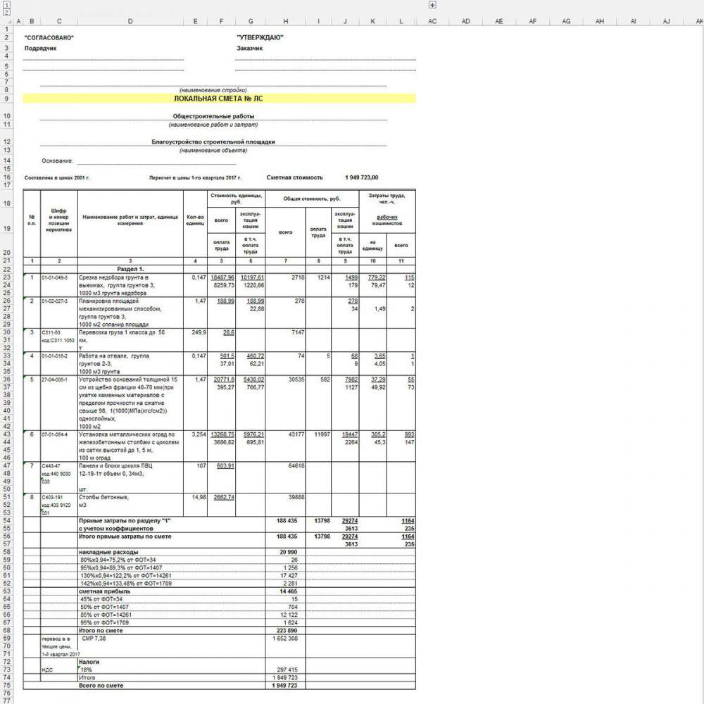 Локальная смета 17-графка