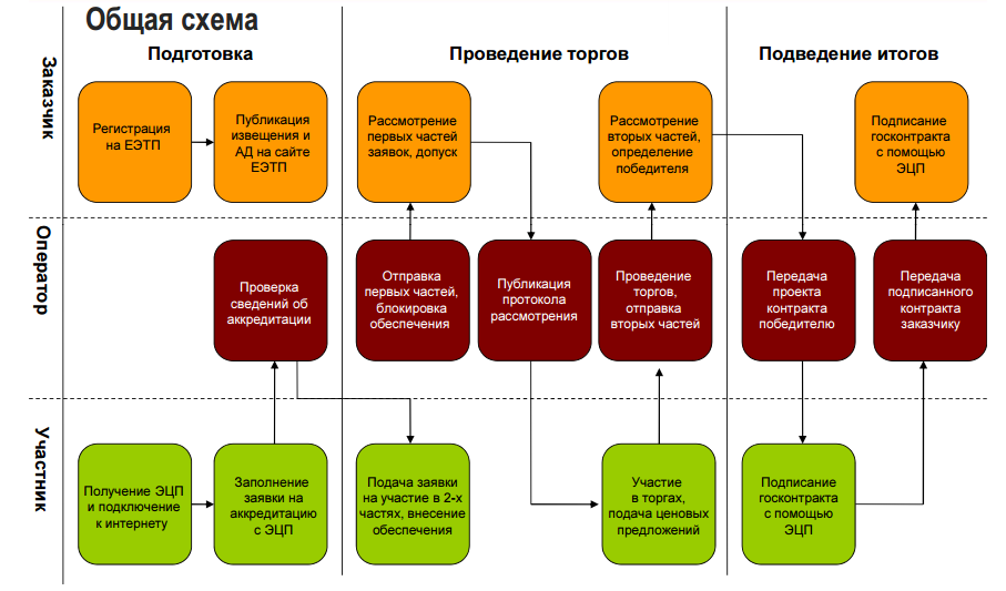Схема организации электронных аукционов на РТС тендер и подачи заявок на них
